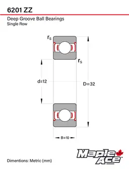 6201-ZZ Ball Bearing 12x32x10mm 6201 ZZ Metal Shielded