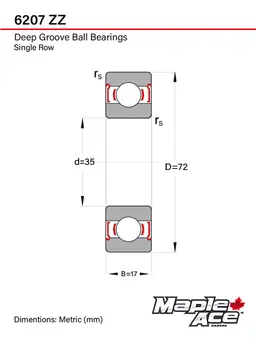 6207-ZZ Ball Bearing 35x72x17mm 6207 ZZ Metal Shielded