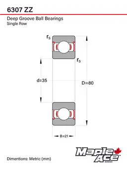 6307-ZZ Ball Bearing 35x80x21mm 6307 ZZ Metal Shielded